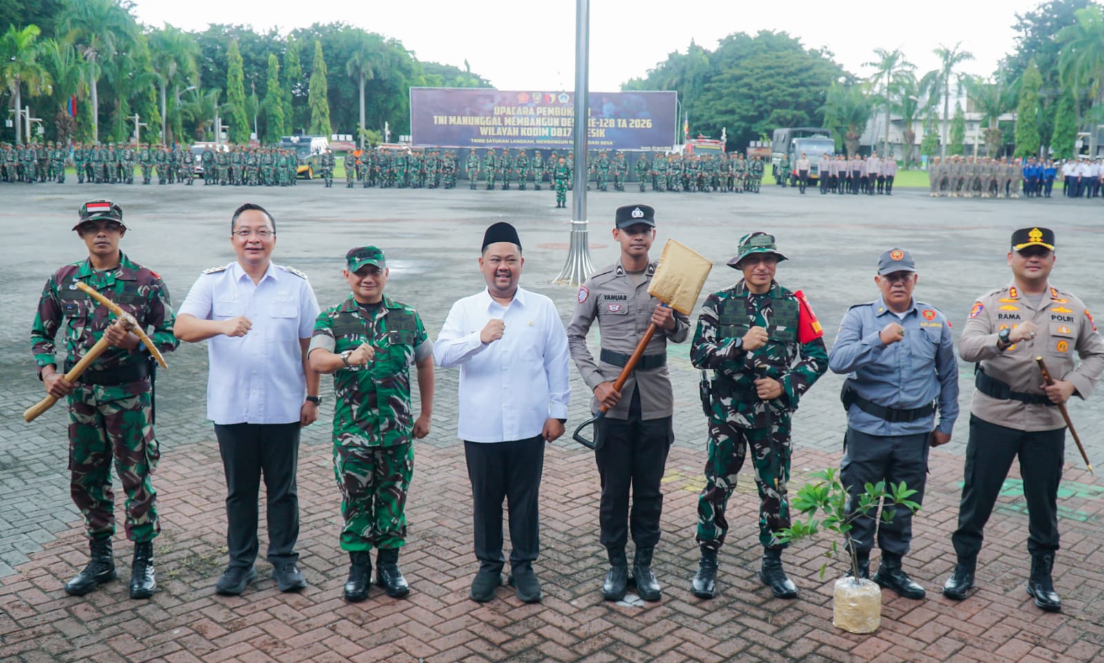 Sementara Dandim 0817/Gresik Letkol Fadly Subur Karamaha, menjelaskan bahwa TMMD merupakan langkah strategis untuk meningkatkan kesejahteraan masyarakat desa secara menyeluruh. Ia menambahkan, sasaran fisik tidak hanya terbatas pada infrastruktur dasar, tetapi juga menyentuh sektor pertanian melalui normalisasi saluran air dari waduk ke area persawahan.
