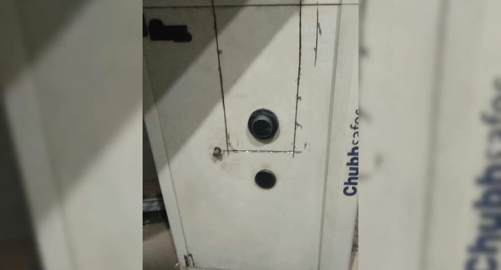 Menurut informasi, sebuah foto yang didapat dan beredar luas di media sosial, seperti seorang Satpam BRI bergelantung di tangga lantai dua, berangkas rusak bekas (rusak), alat gerinda dan alat – alat perkakas lainnya.