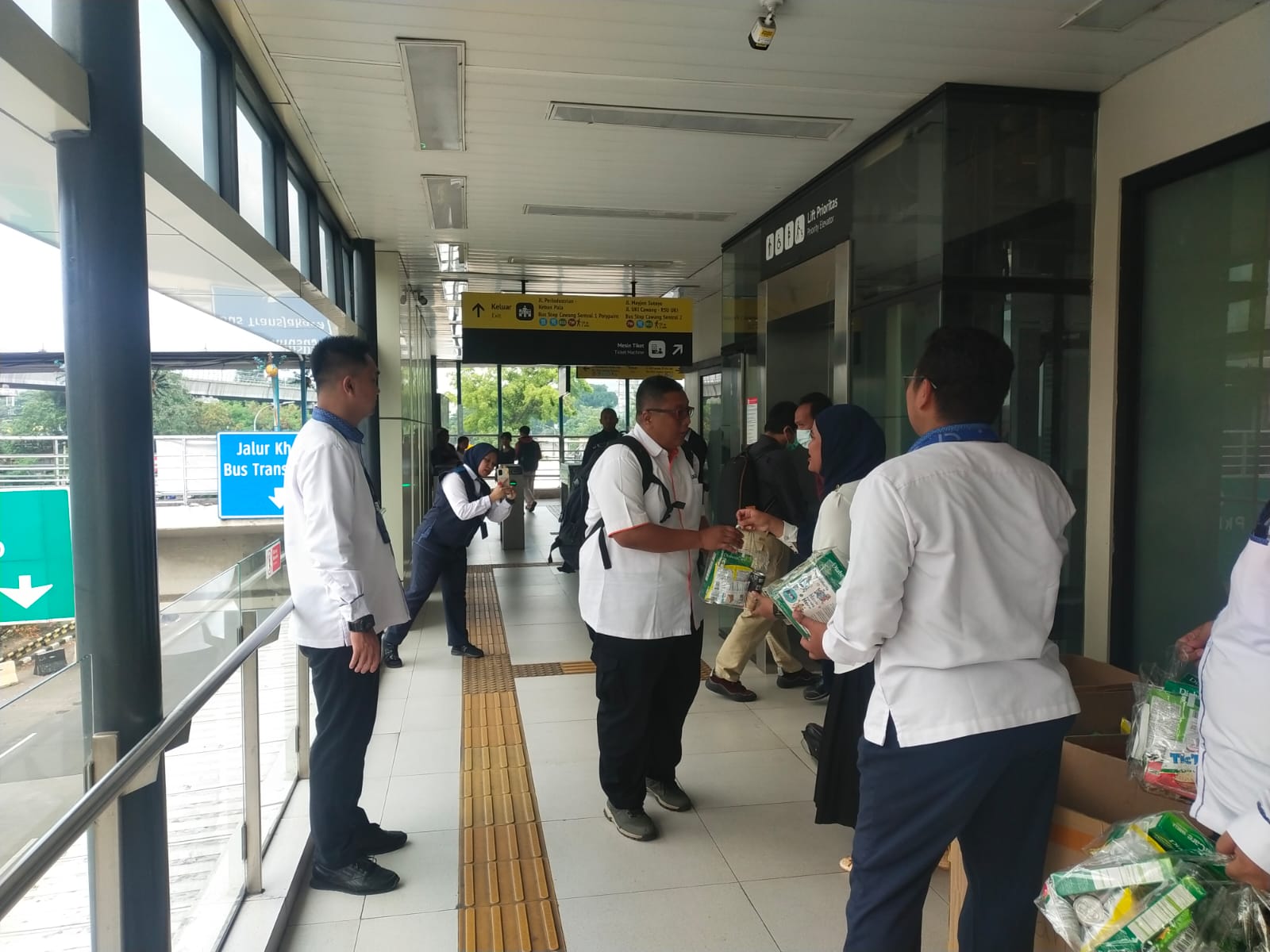 Seperti yang dilakukan Tim Interal Audit Transjakarta bersama Tim Operasional Koridor Cawang Sentral/ UKI, dengan ramah mereka membagikan ratusan paket bingkisan berisi snack, minuman kemasan dan permen kepada pelanggan busway di hari itu.