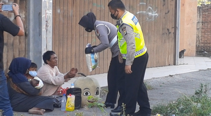 Polisi Bagikan Sembako, Ke Pemulung, Kuli Bangunan, Tukang Sapu Jalan dan Tukang Becak