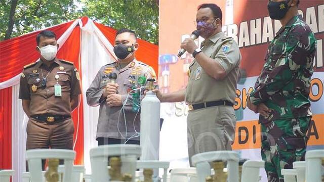 Kapolda Metro Jaya Serahkan 166 Tabung Oksigen Hasil Sitaan ke Anies Baswedan