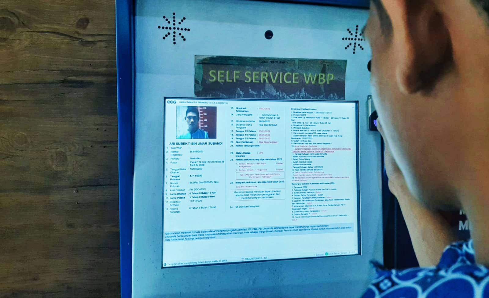 Sidoarjo l Lampumerah.id – Kanwil Kemenkumham Jatim mendorong pemanfaatan anjungan mandiri untuk pelayanan kepada warga binaan pemasyarakatan (WBP). Salah satu lapas yang telah menerapkan layanan mandiri ini adalah Lapas Sidoarjo. Dalam anjungan mandiri tersebut, WBP bisa mengakses dan melihat sendiri ekspirasi masa tahanan hingga perolehan remisi dan asimilasi.