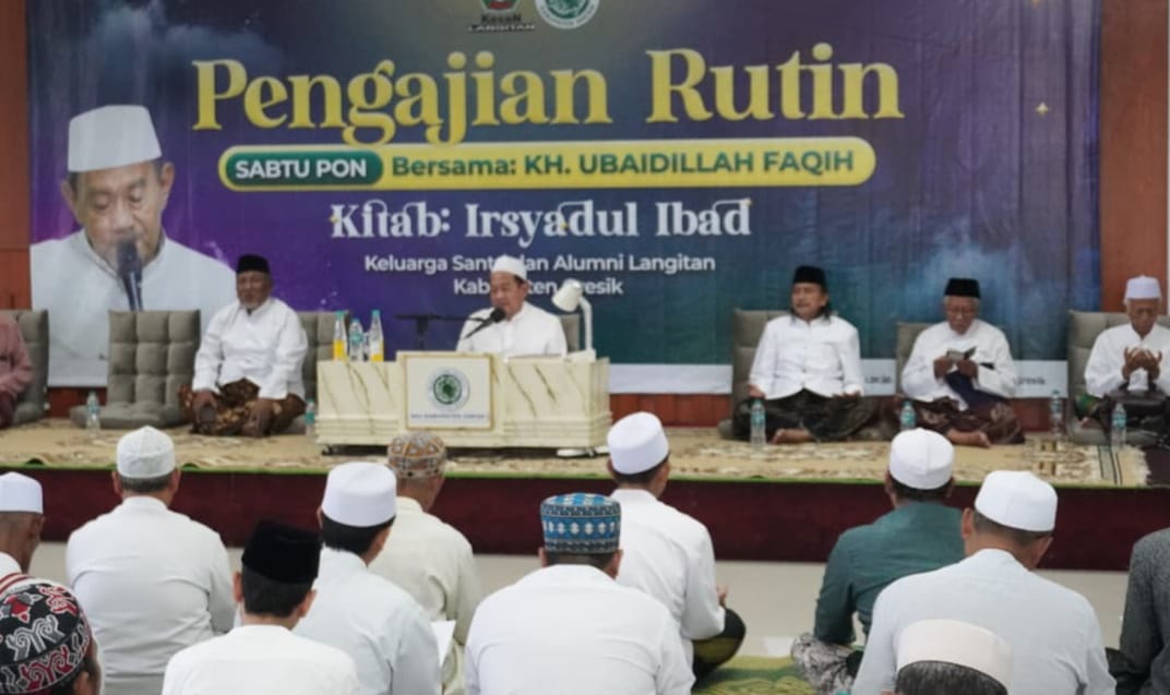 Dalam Pengajian Rutin Sabtu Pon, bekerja sama dengan Majelis Ulama Indonesia (MUI) Kabupaten Gresik yang dilaksanakan bertepatan dengan 12 Sya’ban 1447 Hijriah, KH. Ubaidillah Faqih mengaji Kitab Irsyadul ‘Ibad karya Syekh Zainuddin Al-Malibari, dengan pembahasan Bab Ta’ziyah.