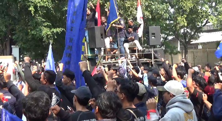 Pantaun Lampumerah.id di lokasi pukul 09.16 WIB. Rabu (24/09/2025), tampak massa melakukan long march, mereka membawa beberapa atribut seperti, bendera, spanduk dan mobil komando.