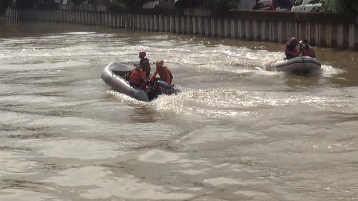 Upaya pencarian pun dilakukan Tim SAR gabungan Kota dan Kabupaten Bekasi dengan membagi area, pertama mencari korban dengan perahu karet dengan jarak 4 Kilometer. Tim kedua melakukan pencarian darat disekitaran lokasi kejadian.