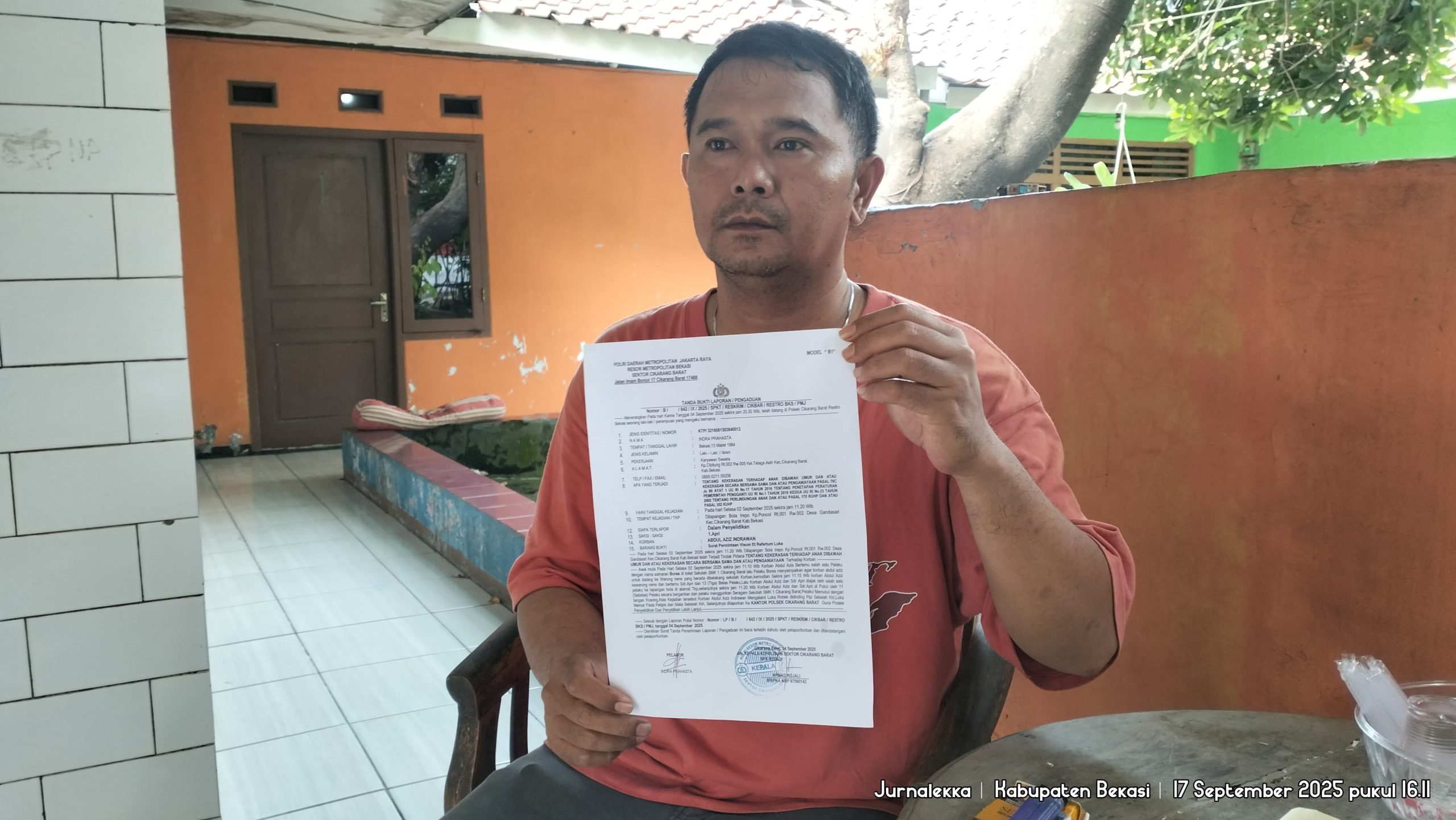 “Mereka berjejer, mukulin anak saya satu per satu. Satu orang bisa mukul sampai delapan kali. Setelah selesai, bergeser, lalu giliran lain,” ujar Indra saat ditemui dirumahnya di Kampung Cibitung, Kelurahan Telagaasih, Kecamatan Cikarang Barat, Rabu (17/9/2025).