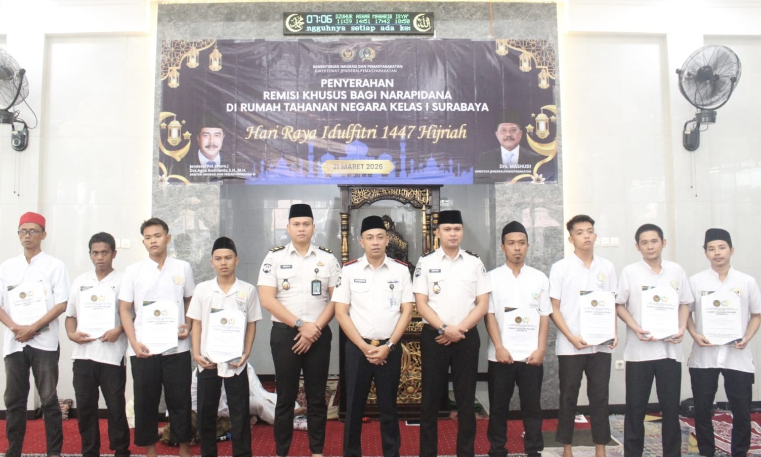 SURABAYA | lampumerah.id – Dalam rangka perayaan Hari Raya Idul Fitri 1447 Hijriah, Rumah Tahanan Negara (Rutan) Kelas I Surabaya memberikan Remisi Khusus (RK) kepada Warga Binaan Pemasyarakatan (WBP) yang beragama Islam dan telah memenuhi syarat sesuai ketentuan yang berlaku.