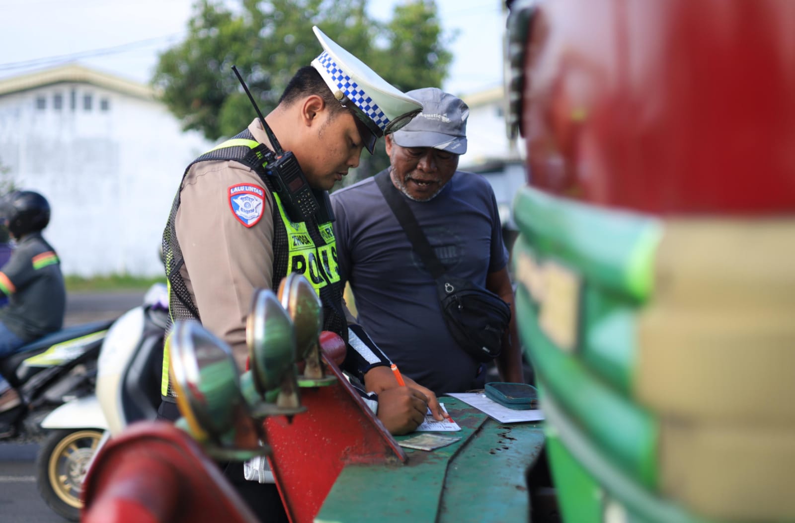 Petugas menerapkan tilang teguran Presisi sebagai bentuk peringatan administratif yang tercatat dalam sistem kepolisian.