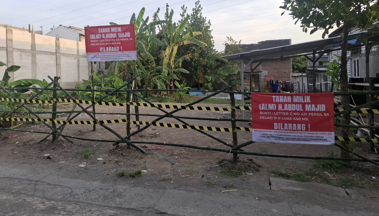 Sebaliknya, klaim kepemilikan baru muncul pada tahun 2024 saat program PTSL berjalan, dengan dasar Letter C Desa tahun 2012 atas nama Abdul Majid. Berdasar itulah, ahli waris Abdul Majid, Lutfi Affandi, memasang patok dan tulisan ancaman hukum di atas lahan tersebut.