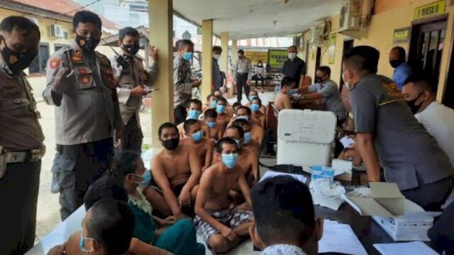 Beda dengan Masyarakat Umum, Vaksinasi Tahanan di Polsek Manggala Setengah Bugil